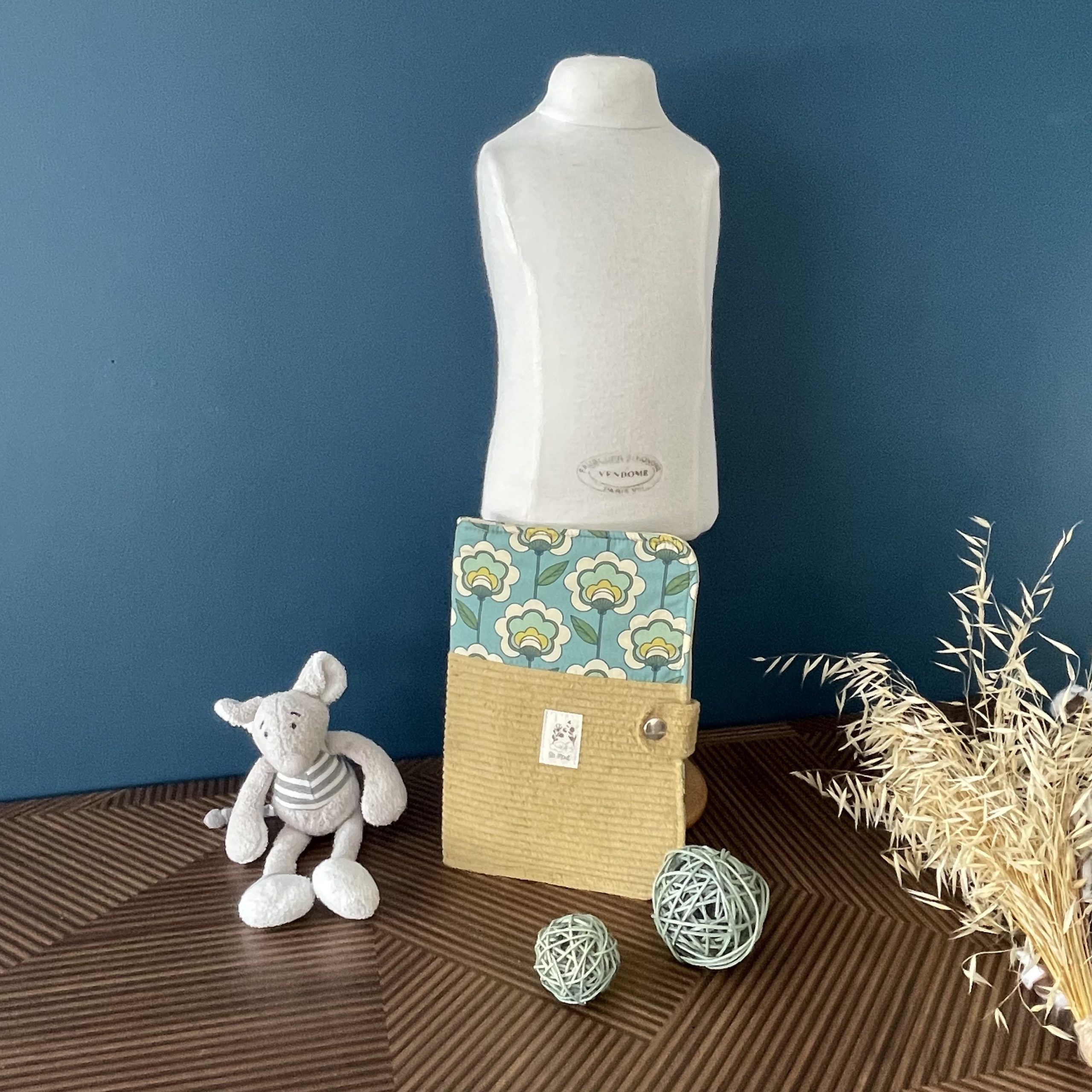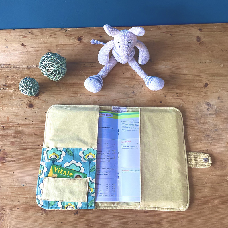 Le protège carnet de santé Rétro Chic est conçu pour préserver avec style l’un des documents les plus précieux de votre enfant. Fabriqué en velours grosses côtes jaune moutarde et en popeline 100% coton à motifs géométriques, il allie résistance et douceur pour une protection optimale. Doté de poches pratiques, il permet de ranger la carte vitale, la carte de mutuelle et les ordonnances, gardant ainsi tous vos documents essentiels bien organisés et accessibles.