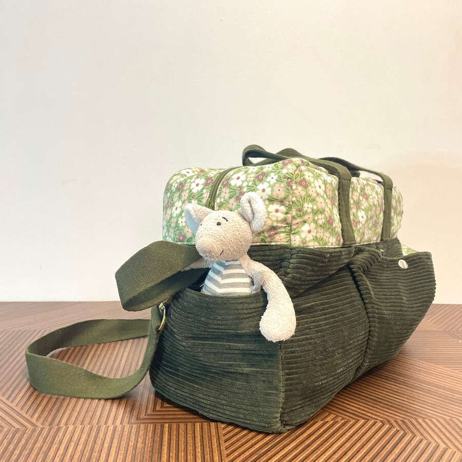 Le sac à langer Bohème est conçu pour les parents en quête de douceur et de fonctionnalité. Fabriqué avec des matériaux de haute qualité, il allie douceur, robustesse et durabilité. Ce sac est confectionné en velours vert kaki, en popeline 100% coton à motifs floraux , et en ouate de rembourrage naturelle de laine de brebis. Le fond amovible, en laine recouvert de popeline, offre une protection supplémentaire et un entretien facile.